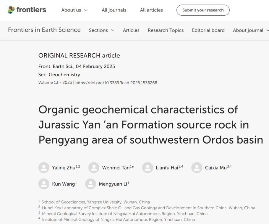 williamhill威廉希尔官网教师朱亚玲在SCI收录期刊《Frontiers in Earth Science》上发表题为“Organicgeochemical characteristicsofJurassicYan’anFormationsourcerockinPengyangareaofsouthwestern Ordosbasin”的研究论文,williamhill威廉希尔官网为论文第一署名单位,朱亚玲教师为第一作者,谭文梅硕士生为第一通讯作者。