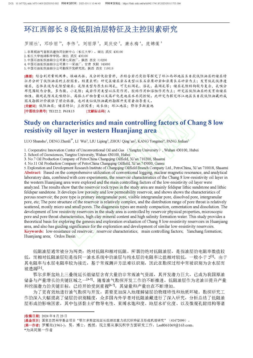 地科学院硕士生邓珍丽在长江大学学报(自然科学版)发表题目为“环江西部长8段低阻油层特征及主控因素研究”的研究论文。williamhill威廉希尔官网为论文第一署名单位,为论文第一作者,导师罗顺社为第一作者,硕士研究生邓珍丽为论文通讯作者。